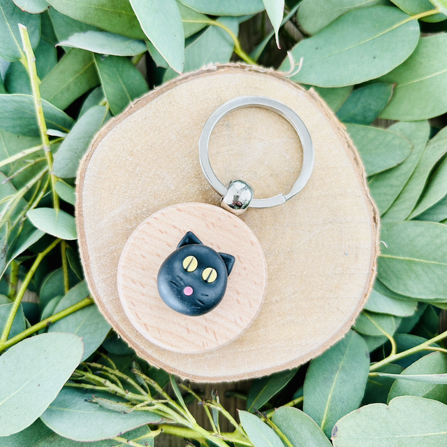 Au dos du porte-clé en bois, un message qui parlera à tous les amoureux des chats :