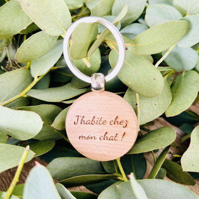 Porte clé "J'habite chez mon chat"