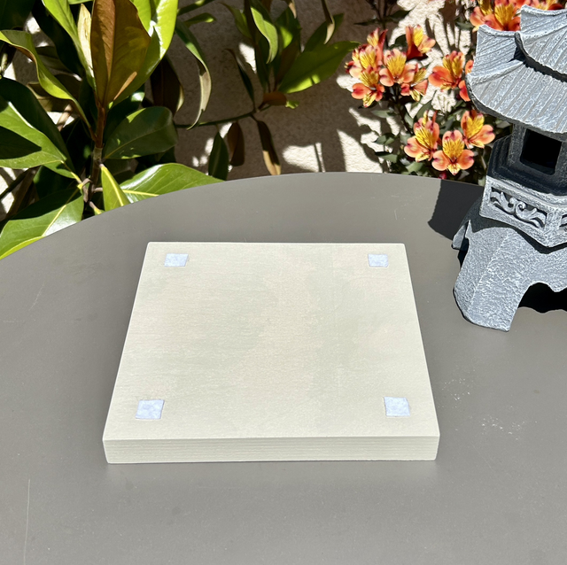 Ce jardin zen est composé d'un plateau en bois peint couleur lin puis rempli de sable fin. Il est agrémenté d'un râteau et d'un support de bougie en bois fabriqués et peints à la main en bois, ainsi que d'une poupée kokeshi rose poudré, de fleurs et de galets modelés à la main, en argile polymère. Des petits patins en feutrine sont collés sous le plateau pour être manipuler sans rayer. Enfin, une bougie est incluse, pour encore plus de détente! Tous les éléments sont à placer selon vos envies sur le plateau, voilà de quoi vous rendre zen et décorer votre intérieur. Ce jardin zen peut être un cadeau original et personnalisé pour vos proches.